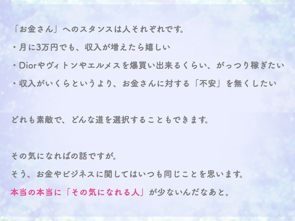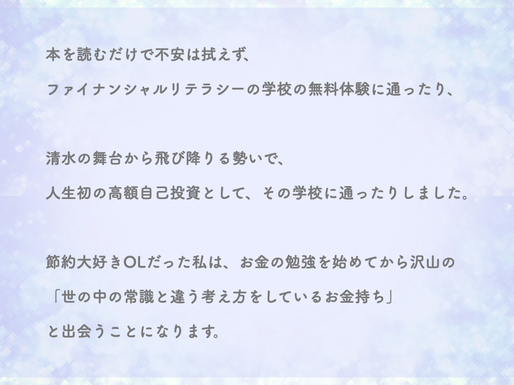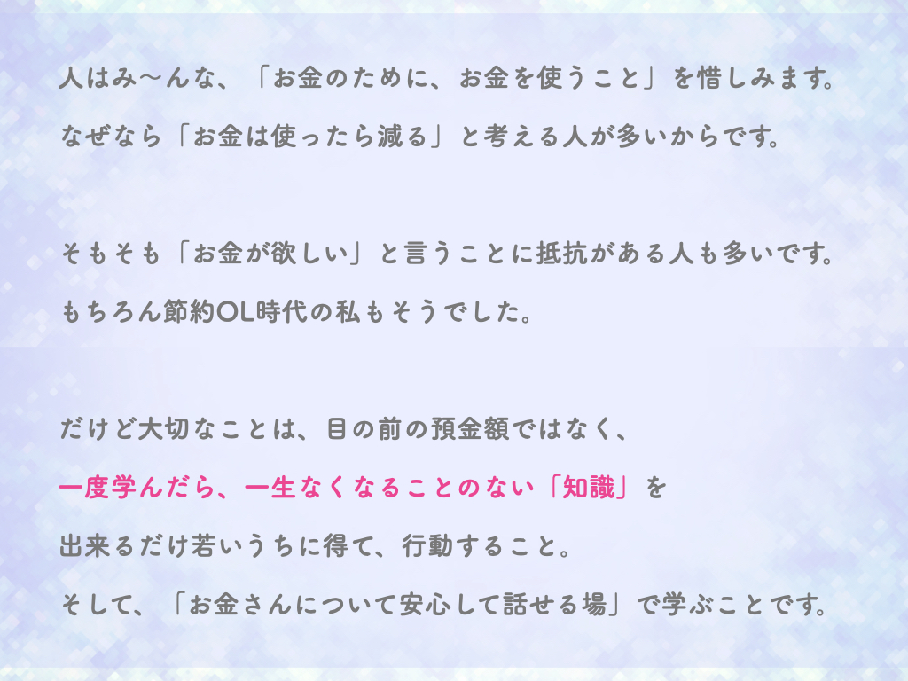 大切なことは「お金さんについての正しい知識を得て、行動する」これにつきます。