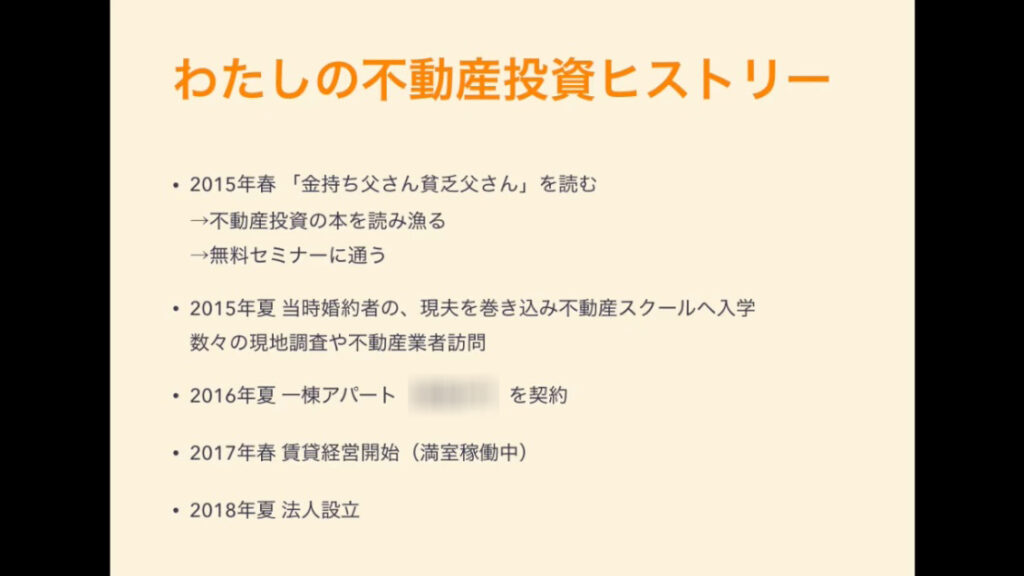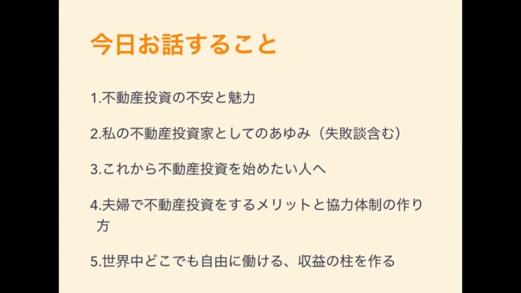 2018年の企業での講演はあまり音質が良くない動画ですが、不動産投資のリアルセミナーとして具体的に話しているので、特典として追加します♡